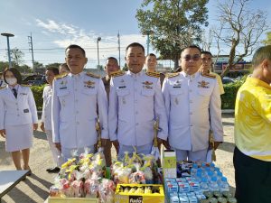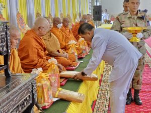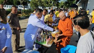 เมื่อวันที่ 5 ธ.ค.66 เวลา 08.30 น. พ.ต.อ.ธีระศักดิ์ เจริญศรี ผกก.สภ.รัตนบุรี มอบหมายให้ พ.ต.ท.ธนรัฐ รอบรู้ รอง ผกก.ป.สภ.รัตนบุรี,พ.ต.ต.พรชัย สุขดี สวป.ฯ,พ.ต.ต.ไพศาล นาเมืองรักษ์ สวย.อก.ฯ พร้อมด้วยข้าราชการตำรวจสภ.รัตนบุรี หัวหน้าส่วนราชการในอำเภอรัตนบุรี ร่วมพิธีทำบุญตักบาตร,พิธีวางพานพุ่มดอกไม้ถวายราชสักการะ และพิธีมอบชุดจิตอาสาพระราชทาน เนื่องในวันคล้ายวันพระราชสมภพในวันชาติและวันพ่อแห่งชาติ 5 ธันวาคม 2566 ณ หอประชุมอำเภอรัตนบุรี จ.สุรินทร์
