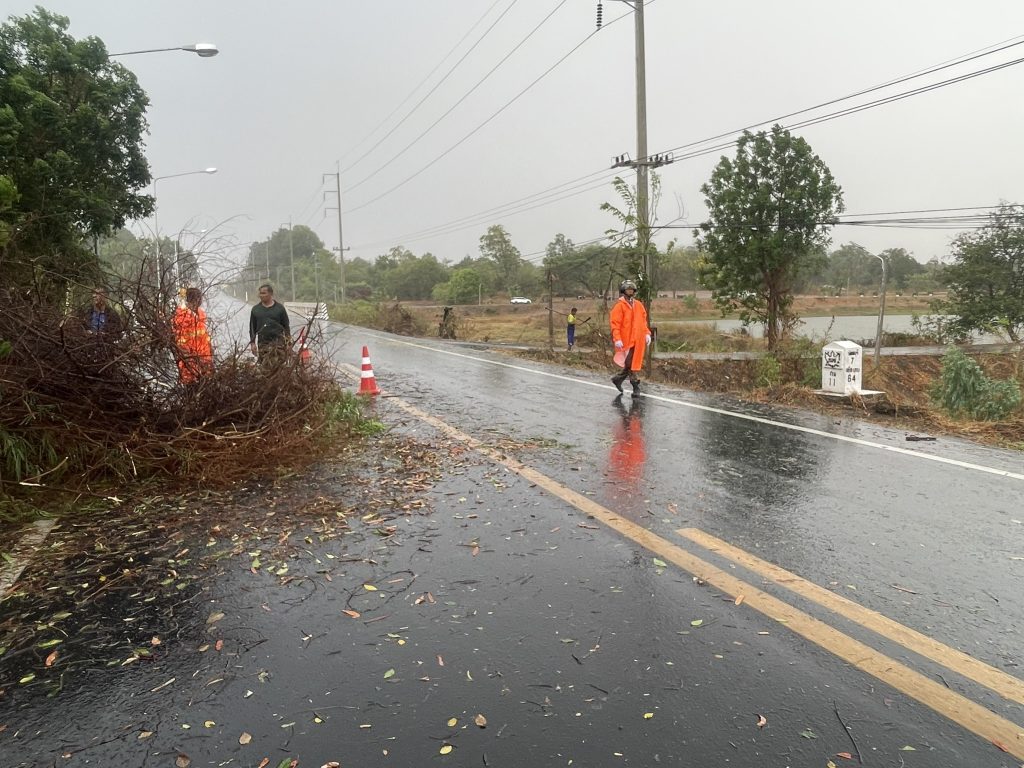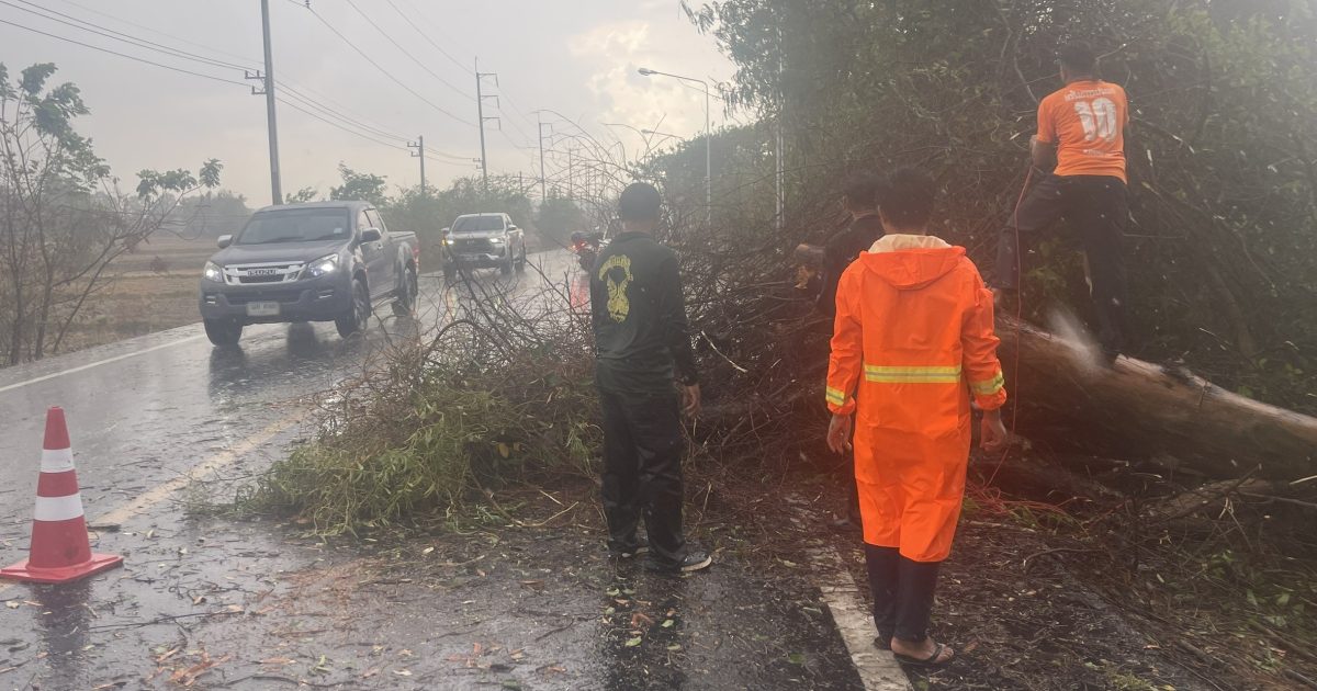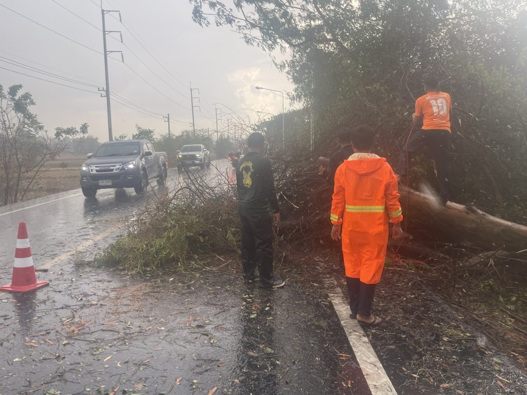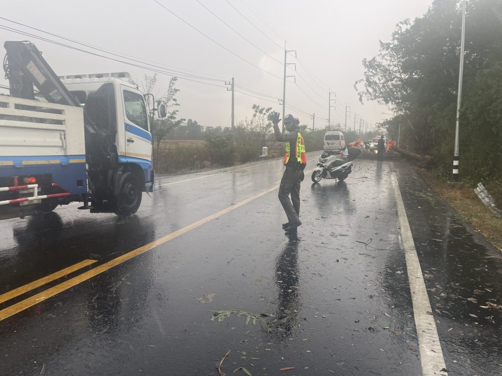 วันที่ (12 มี.ค.68 )เวลา 14.30 น.ชุดจราจร สภ.รัตนบุรี อำนวยการจราจรและป้องกันเหตุ ร่วมกับกู้ชีพ อบต.น้ำเขียว ตัดต้นไม้ที่ล้มขวางถนนสายรัตนบุรี-ท่าตูม(สะพานบ้านน้ำเขียว) ต.น้ำเขียว อ.รัตนบุรี จ.สุรินทร์ จากเกิดพายุฝนลมแรง จนสามารถเปิดช่องการจราจรได้