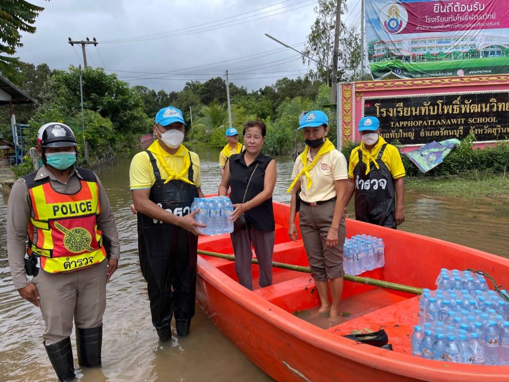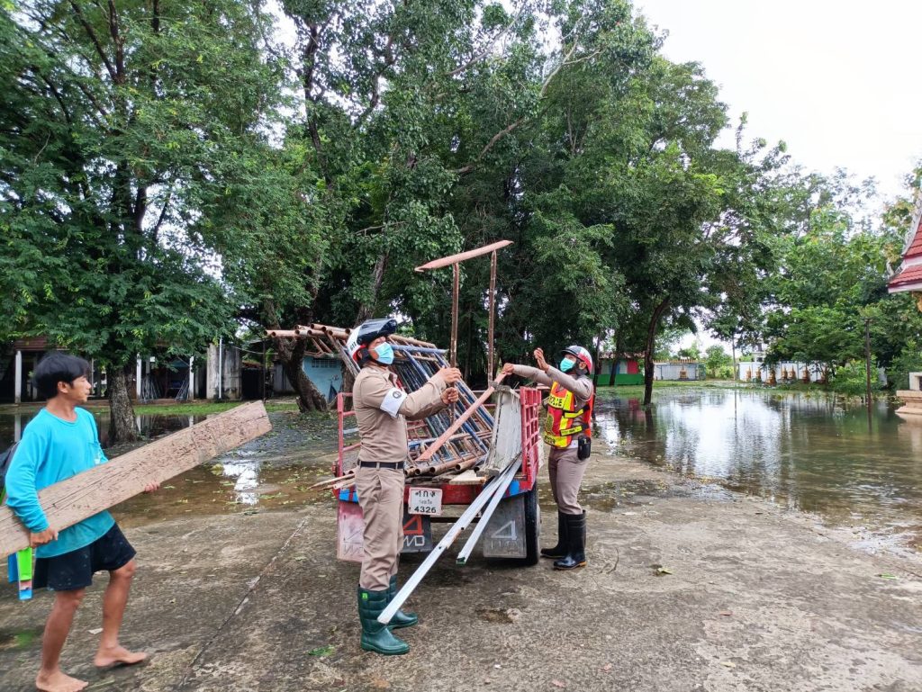 ให้ความช่วยเหลือประชาชนที่ได้รับผลกระทบจากพายุฝน ทำให้เกิดน้ำท่วมบ้านพักอาศัย และพื้นที่การเกษตร ออกสำรวจเส้นทางที่มีต้มไม้และเสาไฟฟ้าล้ม ได้ประสานการไฟฟ้ารัตนบุรีเข้าดำเนินการตัดกระแสไฟ ตัดต้นไม้ที่ล้มขวางทางจราจร ประชาสัมพันธ์และอำนวยความสะดวกการจราจรให้แก่ประชาชนที่สัญจรผ่านบริเวณน้ำท่วมขัง ได้มอบสิ่งของเพื่อเป็นกำลังใจให้กับประชาชนในพื้นที่ บ้านหนองเหล็ก,บ้านอ้อ ต.หนองบัวทอง บ้านโพธิ์ต.ทับใหญ่ อ.รัตนบุรี จ.สุรินทร์