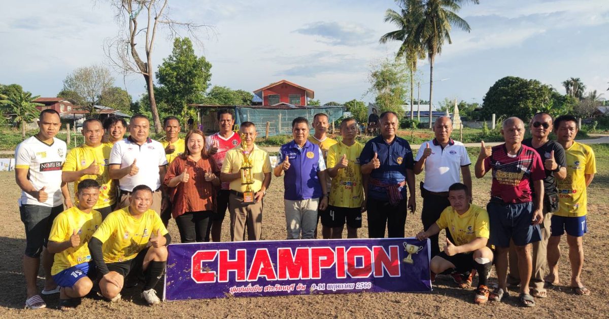 เมื่อเวลา 16.00 น. วันที่ 11 พ.ค.2566 พ.ต.อ.ธีระศักดิ์ เจริญศรี ผกก.สภ.รัตนบุรี พร้อมด้วย พ.ต.ต.พรชัย สุขดี สวป.สภ.รัตนบุรี/หน.ชุด ชชยย. และเจ้าหน้าที่ตำรวจชุดปฏิบัติการชชยย. ข้าราชการตำรวจ สภ.รัตนบุรี ร่วมกิจกรรมพิธีปิดการแข่งขันกีฬาฟุตบอล “ชุมชนยั่งยืน สภ.รัตนบุรี คัพ” ณ สนามกีฬาชั่วคราว ม.4 บ้านสำโรง ต.รัตนบุรี อ.รัตนบุรี จ.สุรินทร์ ซึ่งมีวัตถุประสงค์ให้ชุมชนเกิดความรัก ความสามัคคี ร่วมมือร่วมใจกันแก้ไขปัญหายาเสพติด สร้างความเข้มแข็งให้กับชุมชน และยั่งยืน ตามการดำเนินการ โครงการดำเนินงานแก้ไขปัญหายาเสพติดแบบครบวงจรตามยุทธศาสตร์ชาติ ประจำปี 2566