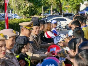 พ.ต.อ.คารม บุญสด ผกก.สภ.รัตนบุรี ,พ.ต.ท.ธนรัฐ รอบรู้ รอง ผกก.ป.ฯ, พ.ต.ท.พรชัย สุขดี สวป.ฯ, พ.ต.ท.พรเทพ พิทยากูล สวป.ชส.ฯ ได้นำข้าราชการตำรวจ สภ.รัตนบุรี เคารพธงชาติ พร้อมด้วยหัวหน้าส่วนราชการอำเภอรัตนบุรี ผู้นำชุมชน และประชาชนอำเภอรัตนบุรี ร่วมกิจกรรมรณรงค์ป้องกันและลดอุบัติเหตุทางถนนช่วงเทศกาลปีใหม่ 2569 พร้อมทั้งแจกหมวกกันน็อค ใบปลิว และเผยแพร่สื่อรณรงค์ให้ ประชาชนขับขี่รถอย่างปลอดภัยให้ปฏิบัติตามกฎหมาย อย่างเคร่งครัด เพื่อป้องกันและลดอุบัติเหตุทางถนน โดยมี พันจ่าเอกสุวิน ห้องแซง นายอำเภอรัตนบุรี เป็นประธาน ณ หน้าที่ว่าการอำเภอรัตนบุรี ต.รัตนบุรี อ.รัตนบุรี จ.สุรินทร์