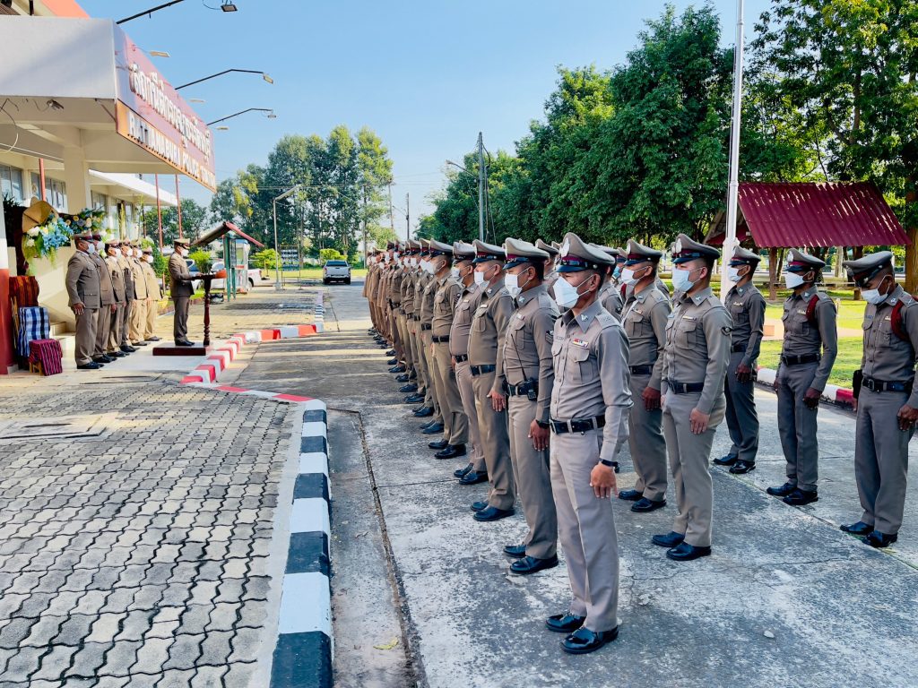 -เวลา08.00ร่วมเข้าแถวเคารพธงชาติ/ร่วมกันกล่าวคำปฏิญาณตนของตำรวจ/กล่าวอุดมคติของตำรวจ/มอบใบประกาศเกียรติคุณดาวคุณธรรมแก่ขรก.ตร.ดีเด่น