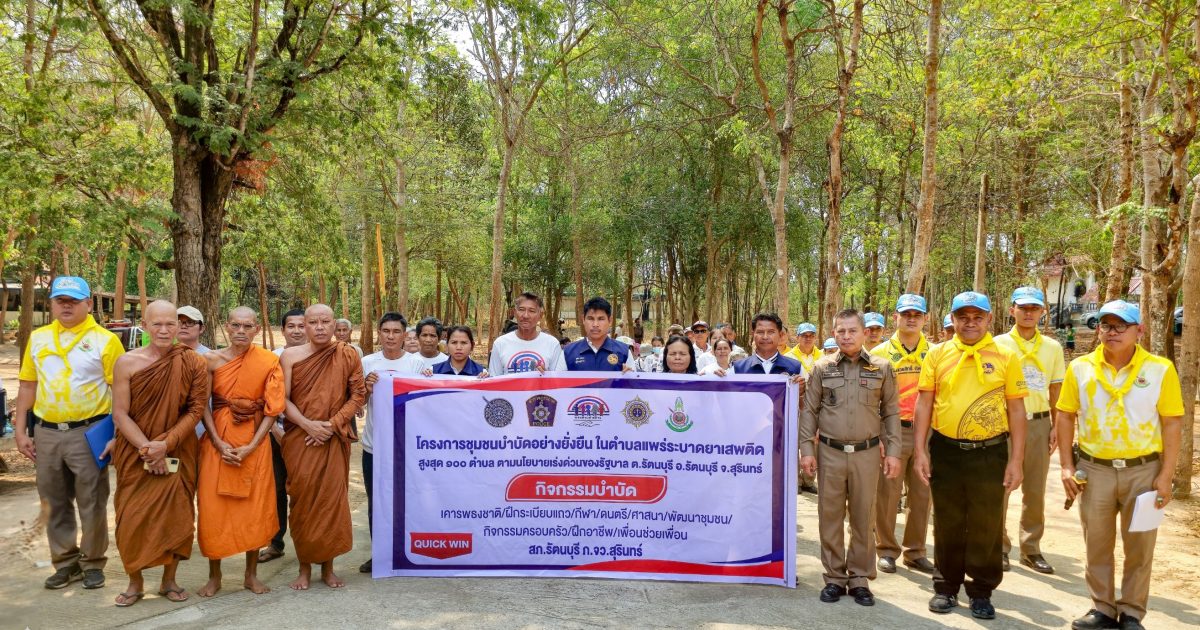 พ.ต.อ.ธีระศักดิ์ เจริญศรี ผกก.สภ.รัตนบุรี ได้นำข้าราชการตำรวจชุดจิตอาสาร่วมกิจกรรมจิตอาสาพัฒนาศาสนสถาน ในโครงการ ชุมชนบำบัดอย่างยั่งยืนในตำบลแพร่ระบาดสูงสุด 100 ตำบล