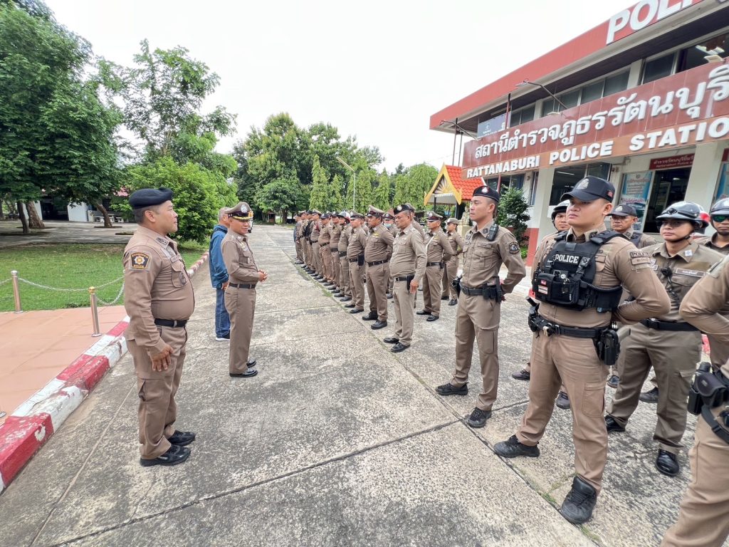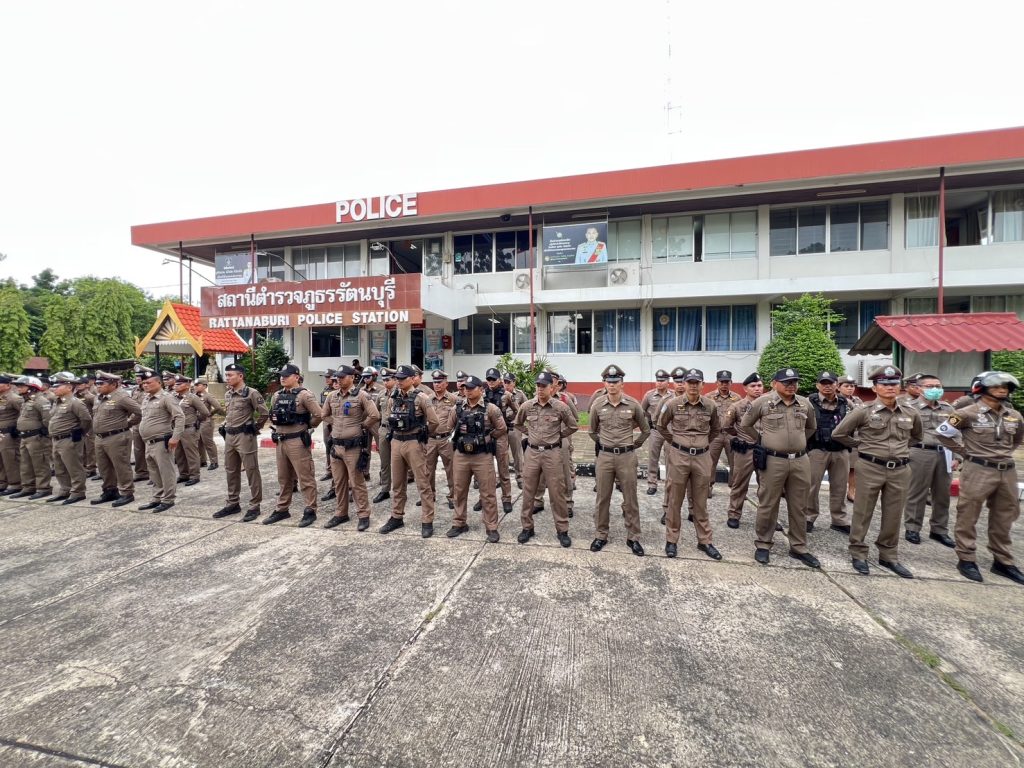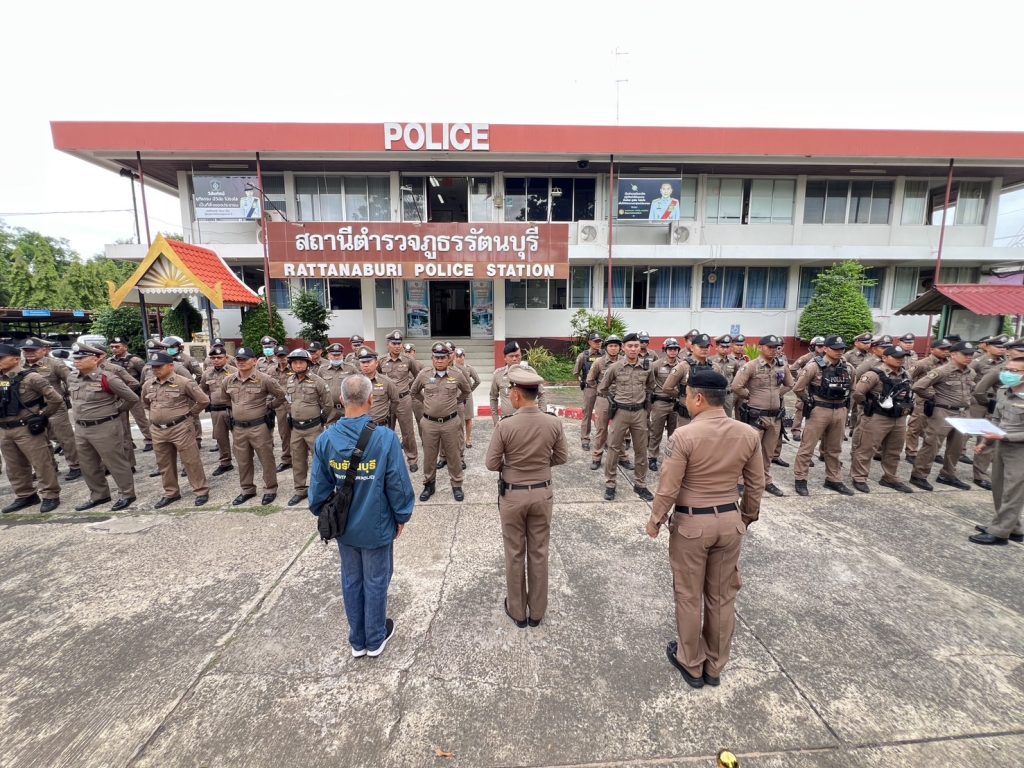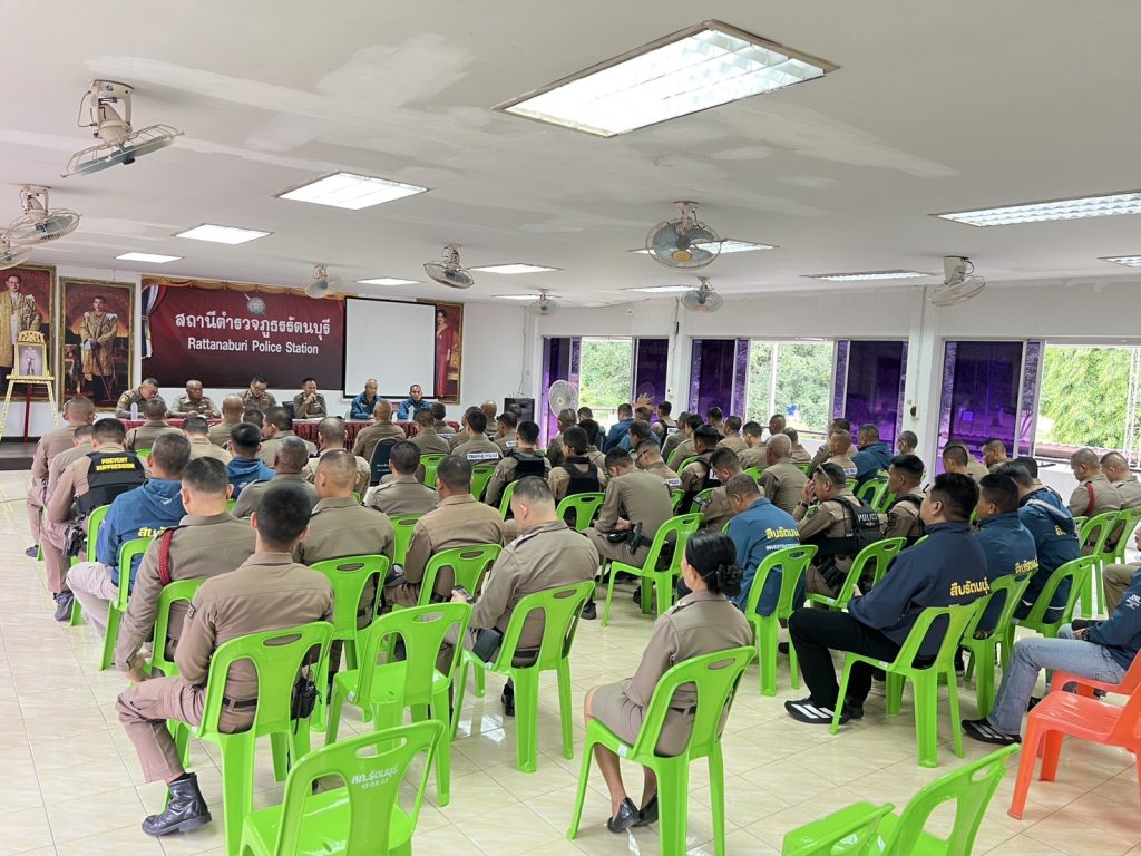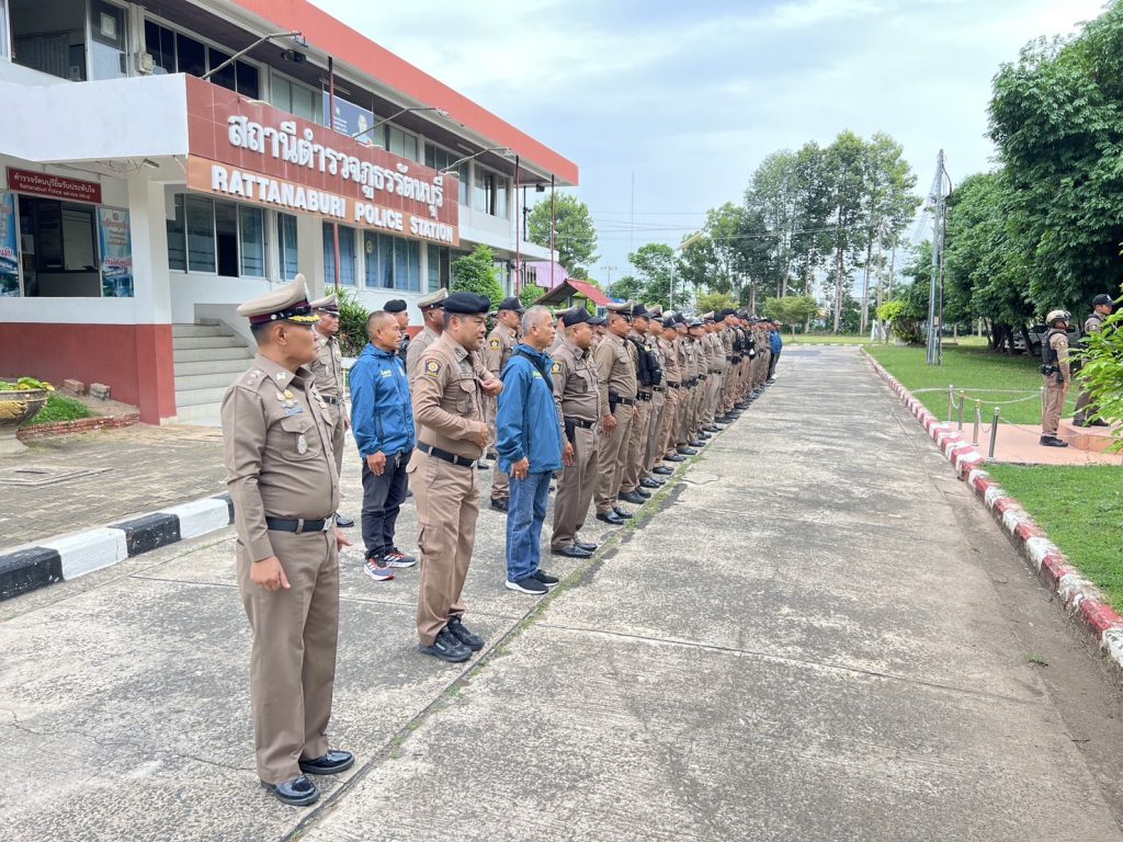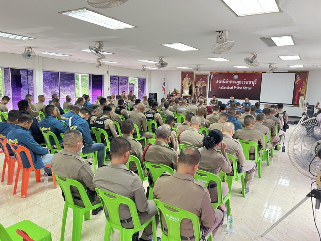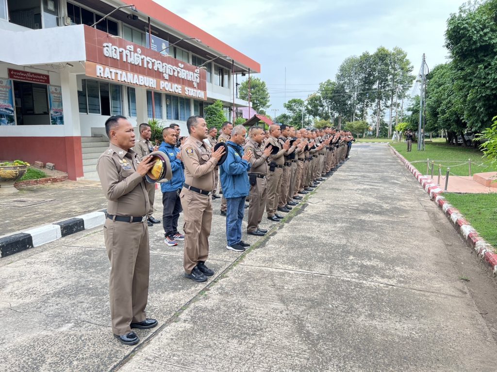 พ.ต.อ.สุวรรณ ผลอินทร์ผกก.สภ.รัตนบุรี, พ.ต.ท.ธนรัฐ รอบรู้ รอง ผกก.ป.สภ.รัตนบุรี, พ.ต.ท.โยธิน มั่นเขตรวิทย์ รอง ผกก.สส.สภ.รัตนบุรี ได้นำข้าราชการตำรวจ สภ.รัตนบุรีทุกนาย ร่วมเคารพธงชาติ สวดมนต์ไหว้พระ กล่าวอุดมคติตำรวจและประชุมชี้แจงข้อราชการ ประชุมประจำเดือนกรกฏาคมชี้แจงข้อสั่งการของผู้บังคับบัญชา และขับเคลื่อนการดำเนินการตามนโยบายของผู้บังคับบัญชาท่าน ผกก.ฯได้มอบเสื้อให้ ข้าราชการตำรวจทุกนายเพื่อใช้ในการร่วมกิจกรรมต่างๆภายในสถานีฯ