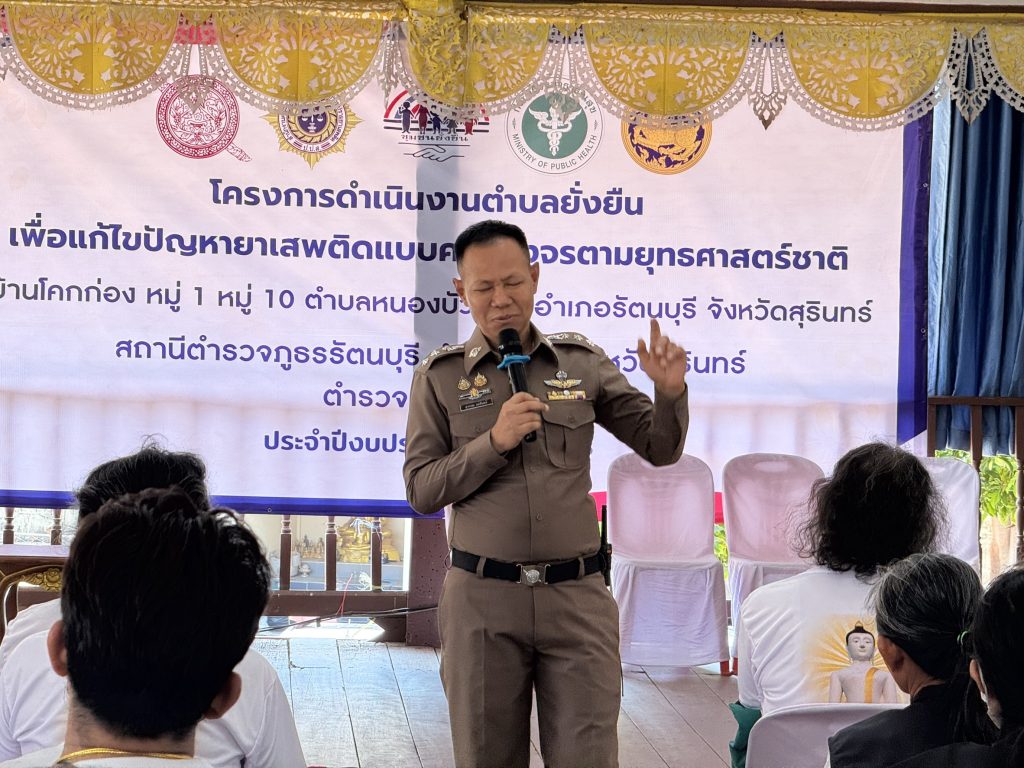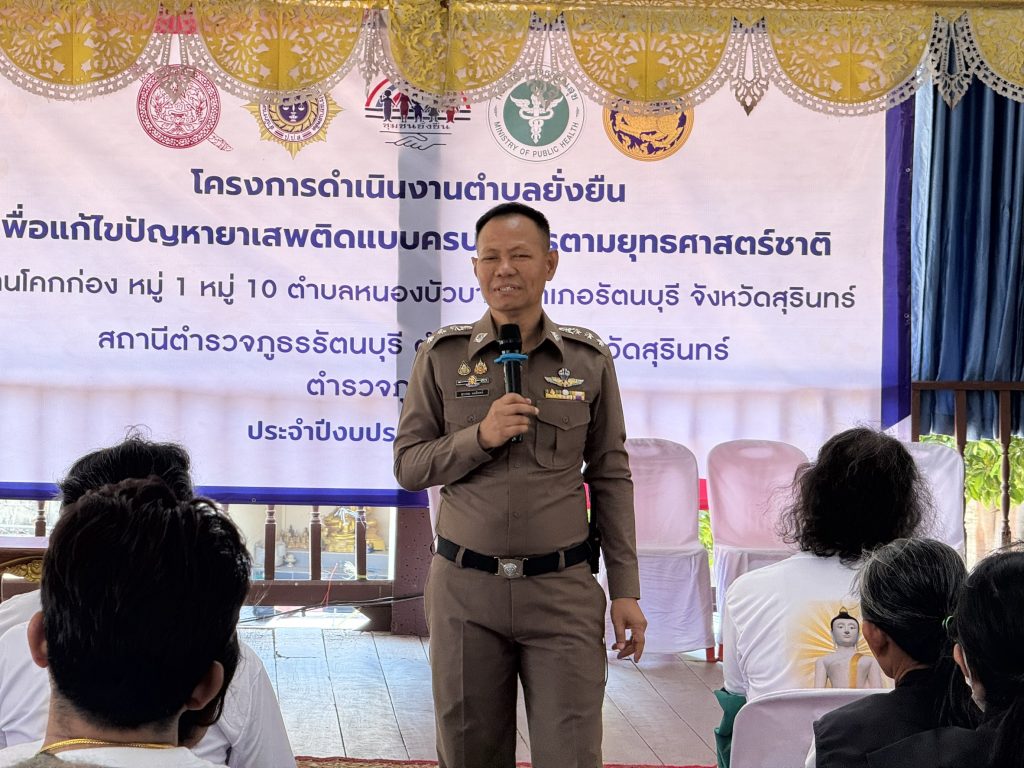 วันที่(12 มี.ค.68) เวลา 09:30 น. พ.จ.อ.สุวิน ห้องแซง นายอำเภอรัตนบุรี ได้เดินทางมาเป็นประธานในพิธีเปิด โครงการดำเนินงานตำบลยั่งยืน เพื่อแก้ไขปัญหายาเสพติดแบบครบวงจรตามยุทธศาสตร์ชาติ ณ วัดบ้านโคกก่อง หมู่ 10 ต.หนองบัวบาน อ.รัตนบุรี จ.สุรินทร์