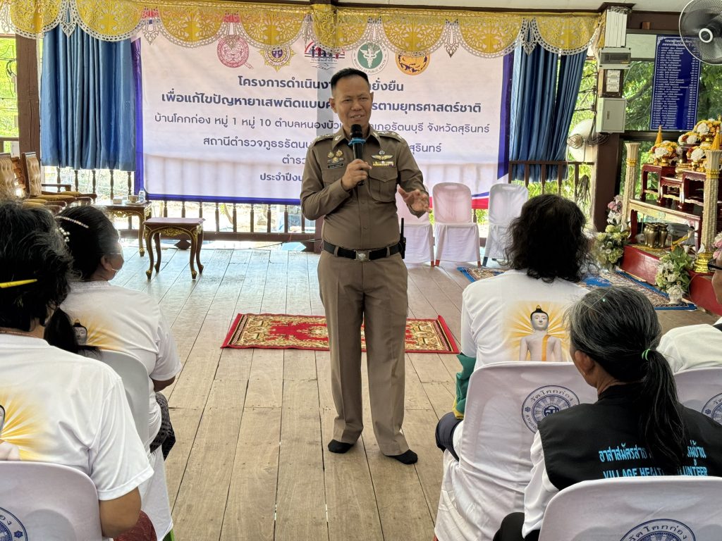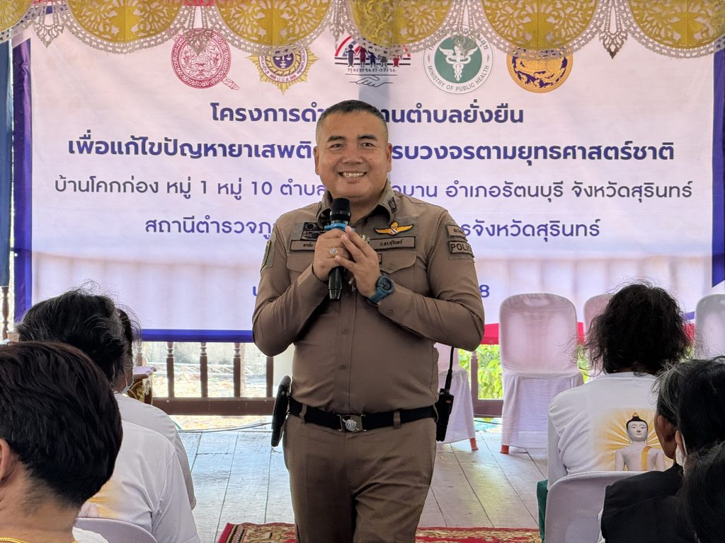 โดยมี พ.ต.อ.สุวรรณ ผลอินทร์ ผกก.สภ.รัตนบุรี พร้อมด้วยข้าราชการตำรวจ สภ.รัตนบุรี , หัวหน้าส่วนราชการ , ตัวแทนส่วนราชการภายในอำเภอรัตนบุรี , ผู้นำชุมชน พร้อมด้วยประชาชน ชาวบ้านโคกก่อง หมู่ 1 และ หมู่ 10 ต.หนองบัวบาน อ.รัตนบุรี จ.สุรินทร์ ร่วมให้การต้อนรับ และเข้าร่วมพิธีเปิดโครงการดำเนินงานตำบลยั่งยืนฯ แต่เวลานี้