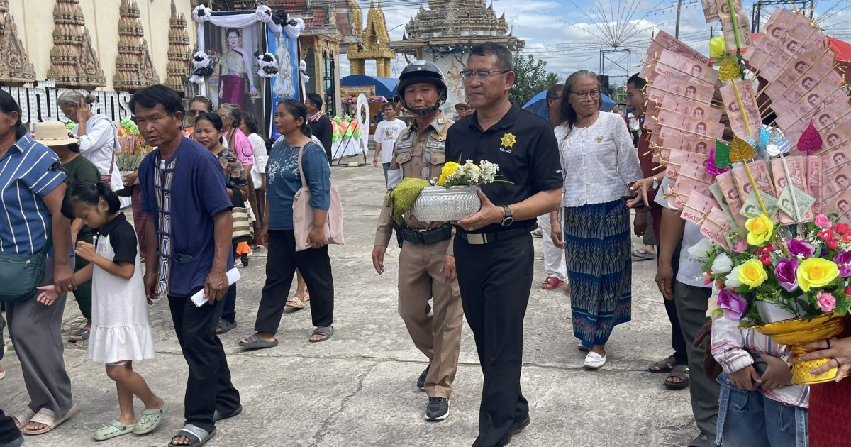 ร.ต.อ.สายันต์ จินดาบุตร ร้อยเวร 60 พร้อมชุดจราจร ว.4 การจราจรงานทำบุญผ้าป่าสามัคคี ณ วัดสว่างบ้านผือ