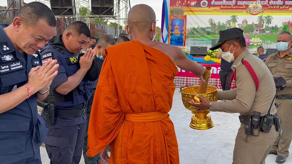 ร่วมปล่อยแถวระดมกวาดล้างอาชญากรรมในช่วงเทศกาลลอยกระทง ประจำปี 2565 โดยมี นายอานนท์ วงศ์แย้ม นายอำเภอรัตนบุรีเป็นประธาน ณ ด้านหน้าวัดสว่างบ้านผือ ต.รัตนบุรี อ.รัตนบุรี จ.สุรินทร์
