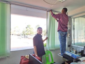 วันที่( 16 ก.พ.2569 )เวลา 09.30 น. พ.ต.อ.คารม บุญสด ผกก.สภ.รัตนบุรี ได้สอบถามถึงปัญหาของผู้ใต้บังคับบัญชา และได้ทราบว่า จุดบริการประชาชนมีแสงสว่างที่มากเกิดไป เป็นอันตรายต่อสุขภาพดวงตาของผู้ปฏิบัติหน้าที่ และบางครั้งทำให้อากาศภายในห้องมีความร้อนสะสมมากเกินไป จึงได้อนุมัติให้มีการติดตั้งม่านบังแดด และติดตั้งฟิล์มกรองแสง เพื่อให้การปฏิบัติหน้าที่ได้สะดวก ให้บริการประชาชนได้อย่างมีประสิทธิภาพ และปรับปรุงจุดให้บริการตัดผมของข้าราชการตำรวจ