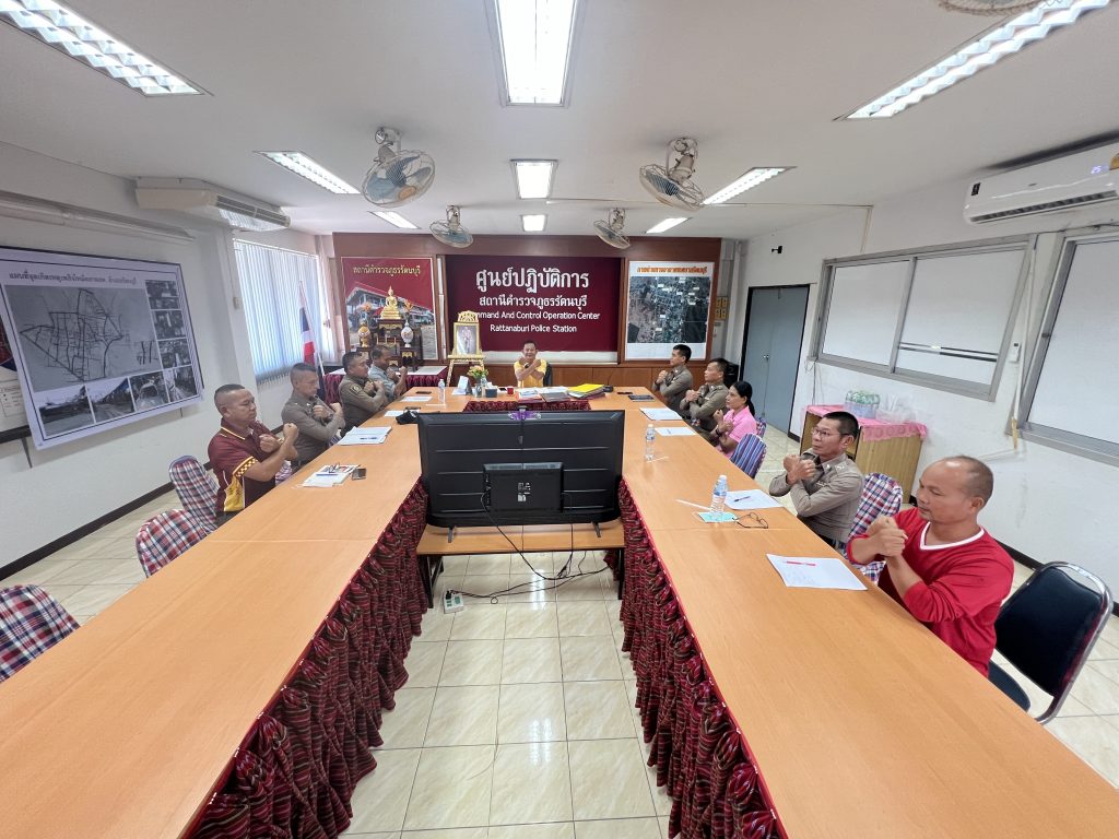 หัวหน้าสถานีชี้แจงและให้ข้อมูลเกี่ยวกับการประเมินแก่ข้าราชการตำรวจ